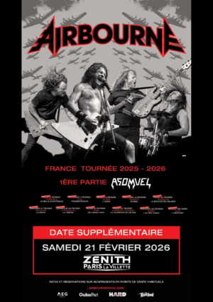 Alors que leur tournée de 11 dates début 2025 affiche complet des mois à l’avance, Airbourne voient plus loin et pensent déjà à 2026… : get ready et notez le samedi 21 février dans vos agendas car les Australiens feront une nouvelle fois trembler les murs du Zénith Paris – La Villette !